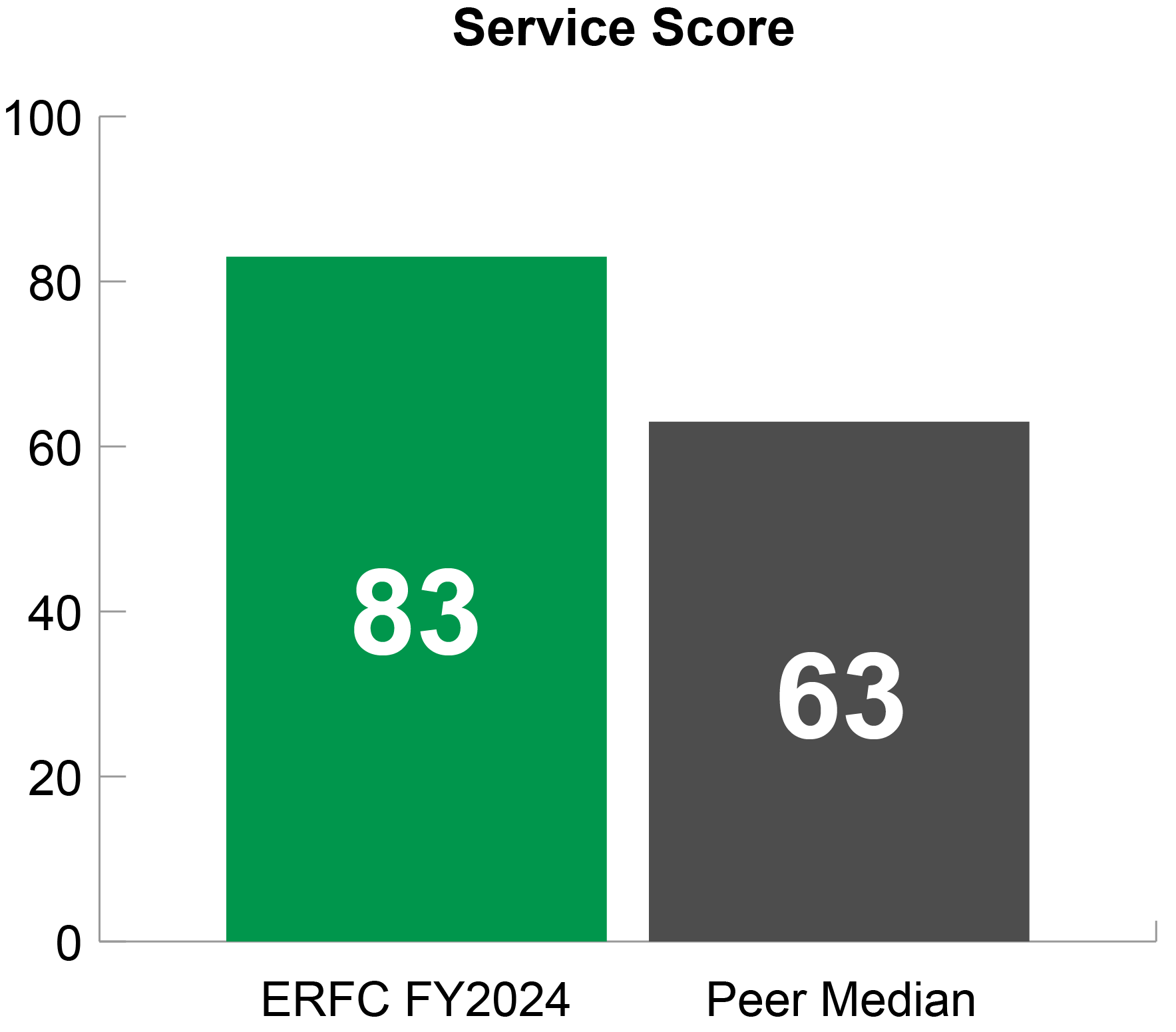 ERFC earned an overall service score of 83, well above the peer median of 63 and 8 points higher than FY2023. Higher service means more channels, faster turnaround times, more availability, more choice, better content, and higher quality. CEM identified several areas where ERFC excelled: